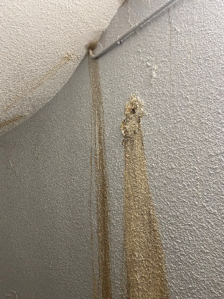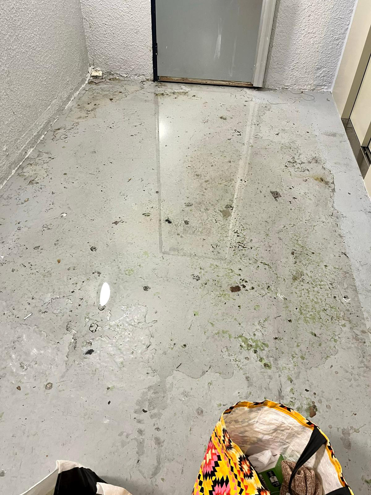 À gauche, explosion des canalisations WC et déversement sur la dalle extérieure du bâtiment A.
