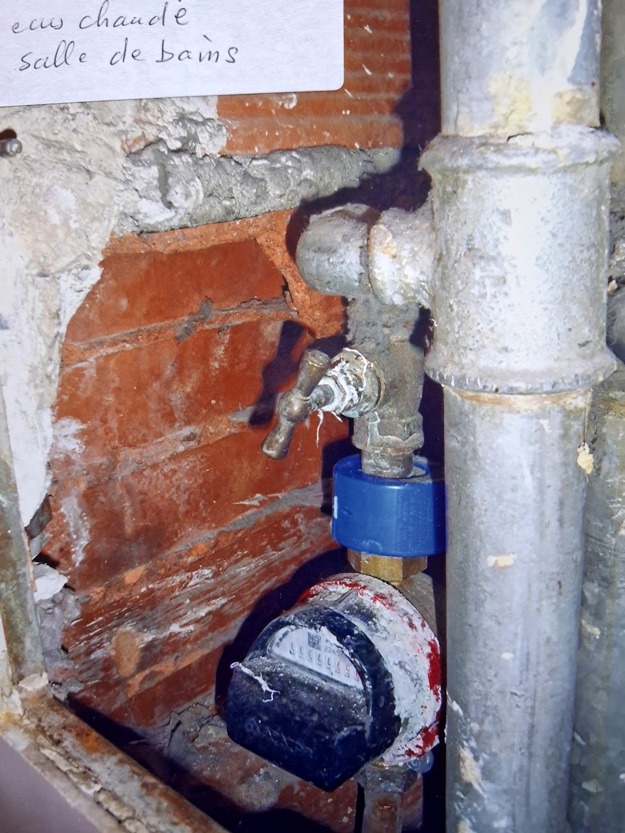 Les dépôts de calcaire sur ce compteur d’un locataire montrent leur ancienneté et des fuites d’eau régulières.